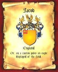 sobrenome de origem universal e patronímica, isto é, deriva do nome próprio do patriarca desta família. O nome vem do hebraico Yah-aqob.Registra-se Anna Catherine Jacob, nascida em 29.03.1665, Vieux, Lixheim. Alsace-Lorraine, Provence, França. Registra-se Anna Magdalena Jacob Notter, nascida em 23.02.1746, Affeltrangen, Thurgau, Suíça. Registra-se Aafje Jacob, nascida em 1639, Westzaan, Holanda. Registra-se Aecht Jacob, nascida em 29.07.1572, Oude Kerk Nederlands Hervormde Kerk, Amesterdam, Holanda. Registra-se Aagtje Jacob, nascida em 1586, Streefkerk, Zuid Holland, Holanda. Registra-se Aachie Jacob, nascida em 1674, Lekkerkerk, Zuid Holland, Holanda. Registra-se Aalbert Jacob, nascido em 03.05.1673, Lekkerkerk, Zuid Holland, Holanda. Registra-se Aelge Jacob, nascida em 05.05.1566, Amsterdam, Holanda. Registra-se Ael Jacob, nascida em 11.07.1573, Amsterdam, Holanda. Registra-se Aeltje Eecker Jacob, nascida em 1656, Blokzijl, Overrijssel, Holanda. Registra-se Aaltje Jacob, nascida em 13.06.1666, Lekkerkerk, Holanda. Registra-se Aaltje Jacob, nascida em 09.02.1752, Amsterdam, Holanda. Registra-se Aaltse Jacob, nascida de 22.12.1805, Giethoom, Overtijssel, Holanda. Registra-se Aron Jacob, nascido em 1716, Amsterdam, Holanda.