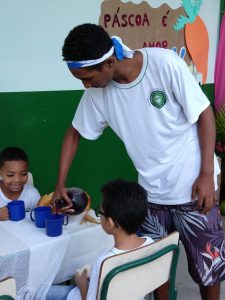O aluno Patrick Henrique A. S. Remazy, do 7º ano, e Sidney da Silva Souza, do 3º , revezaram representando Jesus durante todo o dia, acompanhados por mais de 24 alunos.