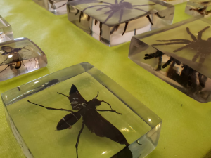 Além da mostra, os visitantes podem aprender as técnicas de incrustação em resina.