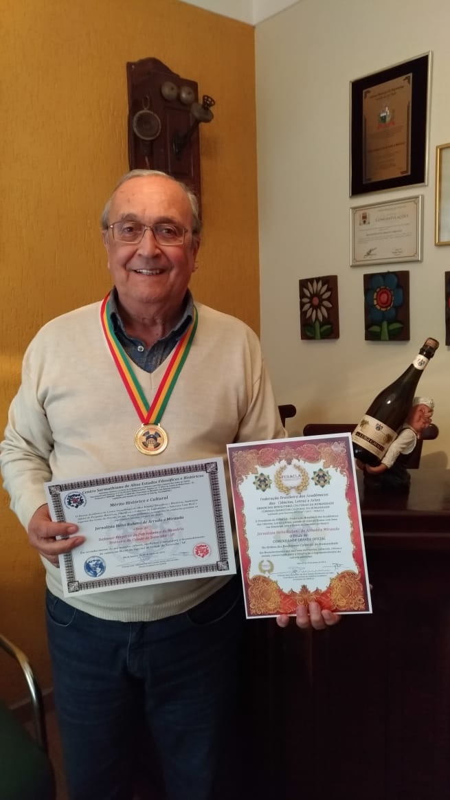 Recebeu, ainda, a MEDALHA MÉRITO ACADÊMICO, em reconhecimento de seu primoroso trabalho em prol da cultura Brasileira, sendo empossado como Acadêmico correspondente, ocupando a Cadeira nº 08.