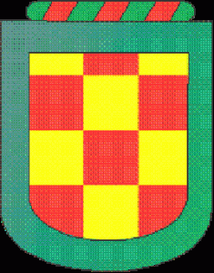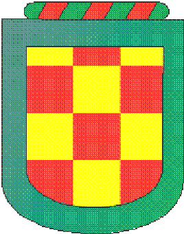 Escudo de gules y un castillo de oro, aclarado en azur, cortado de sinople y dos corderos de plata andantes puestos en palo.