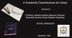 A Academia Caxambuense de Letras – ACL está promovendo o I Prêmio Literário Antônio Maurício Ferreira, criado pela Assembleia Geral de 27 de setembro de 2020 e retificada em 23 de janeiro de 2021, tendo por Paraninfo o escritor e historiador Paulo Roberto Paranhos.