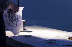 Em cena, além dos atores, está o artista plástico e ilustrador Roberto Zink, que ilustra ao vivo os temas e cenas retratados pela peça e interfere diretamente na encenação. O elenco é formado por Juliana Valente, Marô Zamaro e Pedro Massuela.