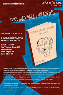 EVENTO: lançamento do livro O cargueiro sentimental (Martins Editora, 2015, 180 páginas), de Cesare Battisti