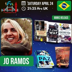 From Brasil, the author Jo Ramos, will make the presentation of the books: “Filho do mundo”, “A silent war”, “Escrever”, “Paz” and “Nossa Patria”