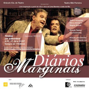 Fundada pelos atores Gilson Gomes, Wagner Brandi e Neila Tavares, em 1996, a Oráculo iniciou as celebrações em fevereiro com a mesma peça, recebendo muitos elogios da crítica e do público. “Diários Marginais” retrata o encontro fictício dos escritores Lima Barreto e João do Rio, dois dos grandes cronistas do Rio de Janeiro do início do século XX.