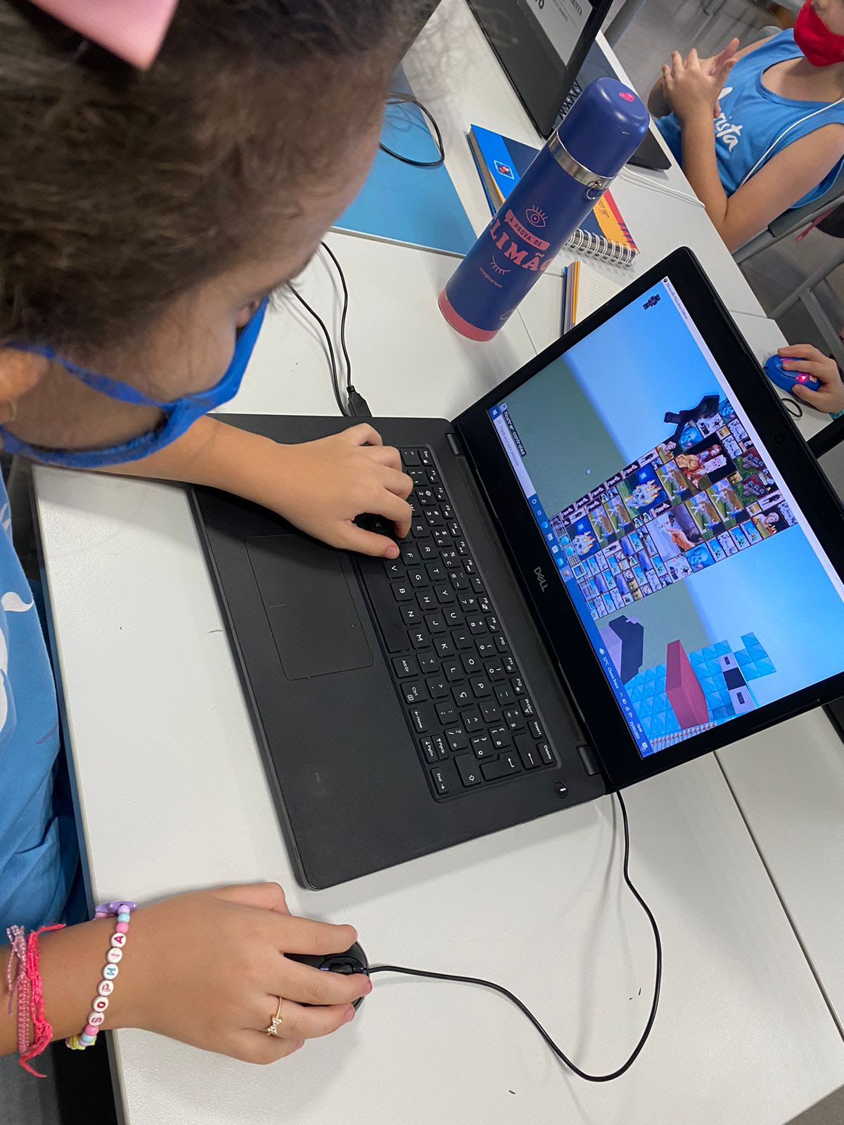 Além da literatura modernista que rompeu com os padrões rígidos de escrita da época, os alunos também montaram uma exposição virtual com obras que hoje não teriam o status de arte, não fosse o movimento de 100 anos atrás, utilizando a ferramenta Minecraft Education (veja foto). “As crianças se envolveram muito com o tema porque viram como as formas de expressão artísticas evoluíram de 1922 até os dias atuais”, observa a professora Gabriela Branco.