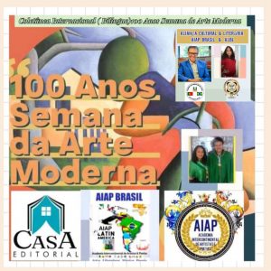 A AIAP BRASIL – ACADEMIA INTERCONTINENTAL DE ARTISTAS & POETAS convida a todos os Acadêmicos da AIAP e amigos Autores, e os Escritores e Poetas da Comunidade Intercontinental para participarem da Coletânea Internacional Bilíngue ( Inglês e Espanhol) em homenagem ao Centenário da Semana de Arte Moderna.