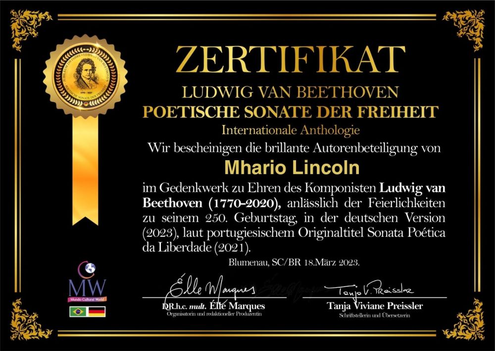 Die Initiative des Verlags Mundo Cultural World, in Zusammenarbeit mit Tanja Viviane Preissler (Journalistin, Schriftstellerin, Musikerin und Dichterin aus São Bento do Sul, Santa Catarina), eine Sammlung brasilianischer und lusophoner Dichter in Deutschland als Hommage an Beethoven, einen der größten Komponisten der Geschichte, zu veröffentlichen, ist von großer Bedeutung. Die herausragende Organisation liegt in den Händen der Journalistin und Kulturproduzentin Élle Marques, unter dem Label Mundo Cultural World.
