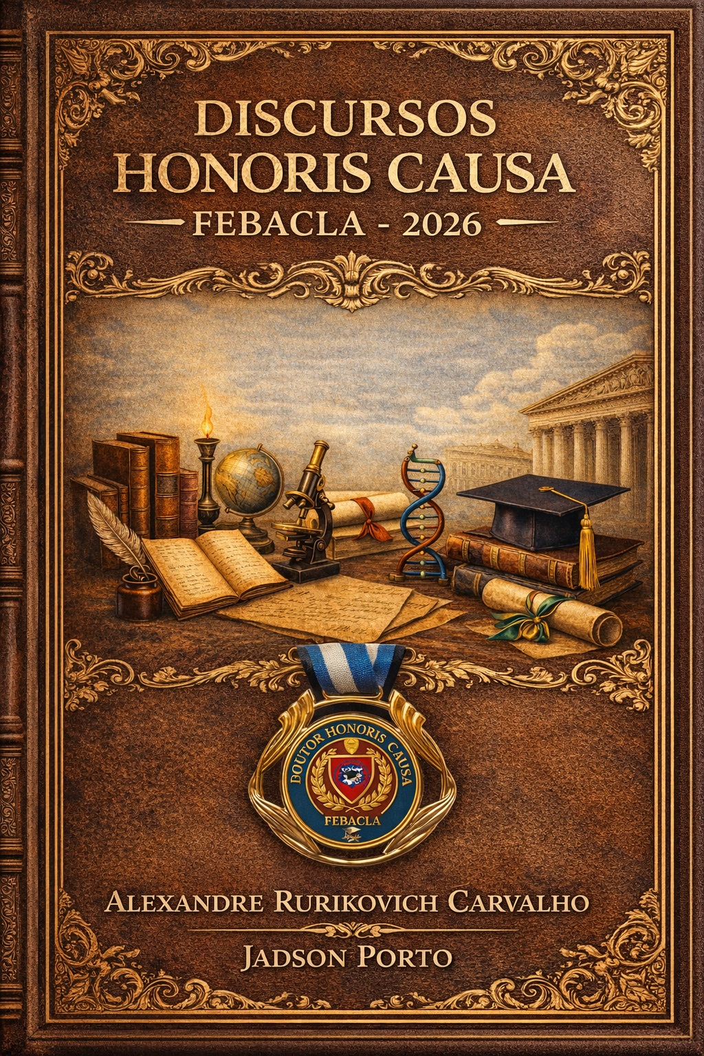 Capa da obra ‘Discursos Honoris Causa’, de autoria do Prof. Dr. h.c. mult. Alexandre Rurikovich Carvalho e do Prof. Dr. Dr. h.c. mult. Jadson Porto.