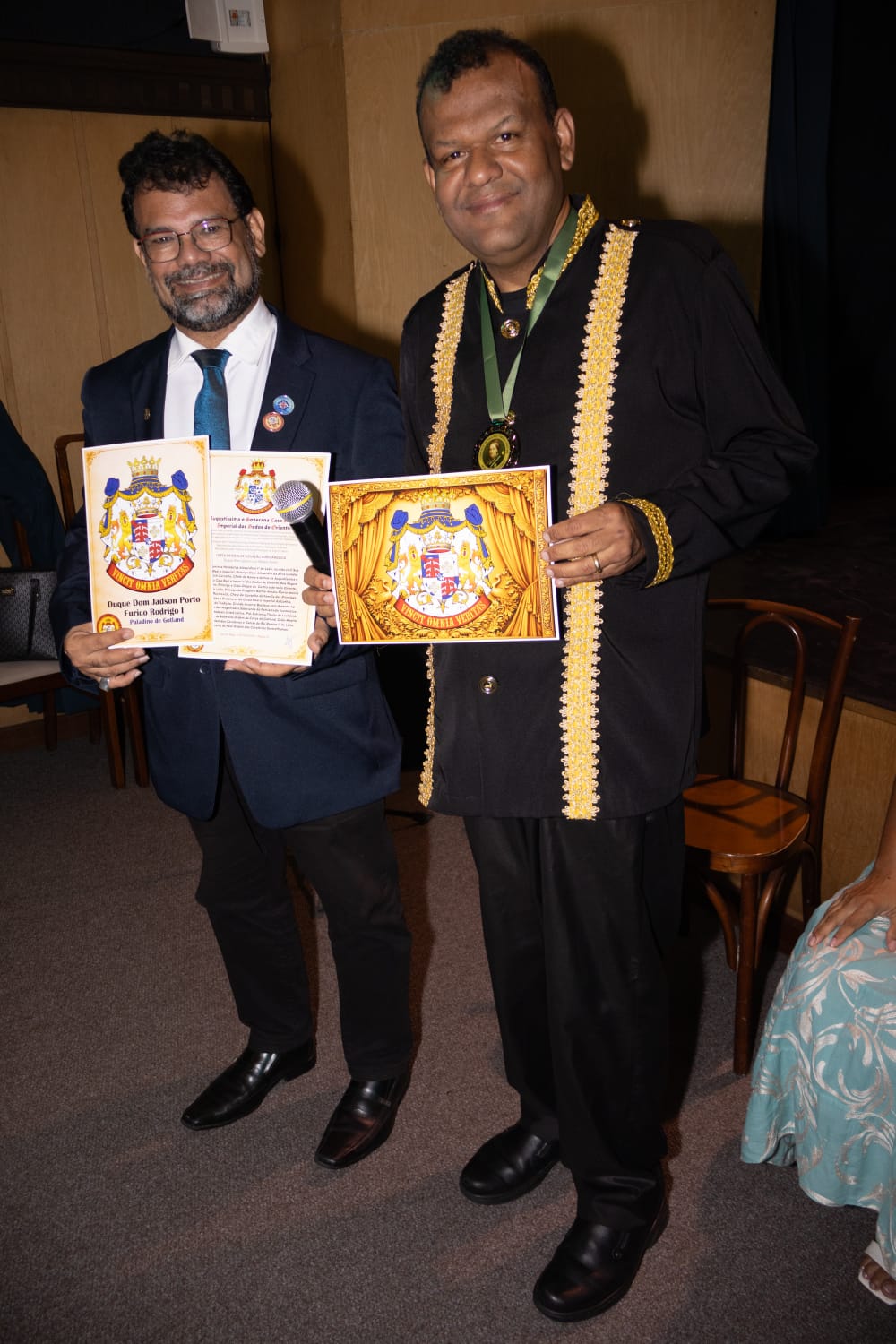 Momento solene da outorga dos títulos de Cavaleiro Comendador e Dama Comendadora da Soberana Ordem da Coroa de Gotland, honraria que distingue personalidades de elevada trajetória e relevantes serviços prestados à sociedade, à cultura e ao bem comum.