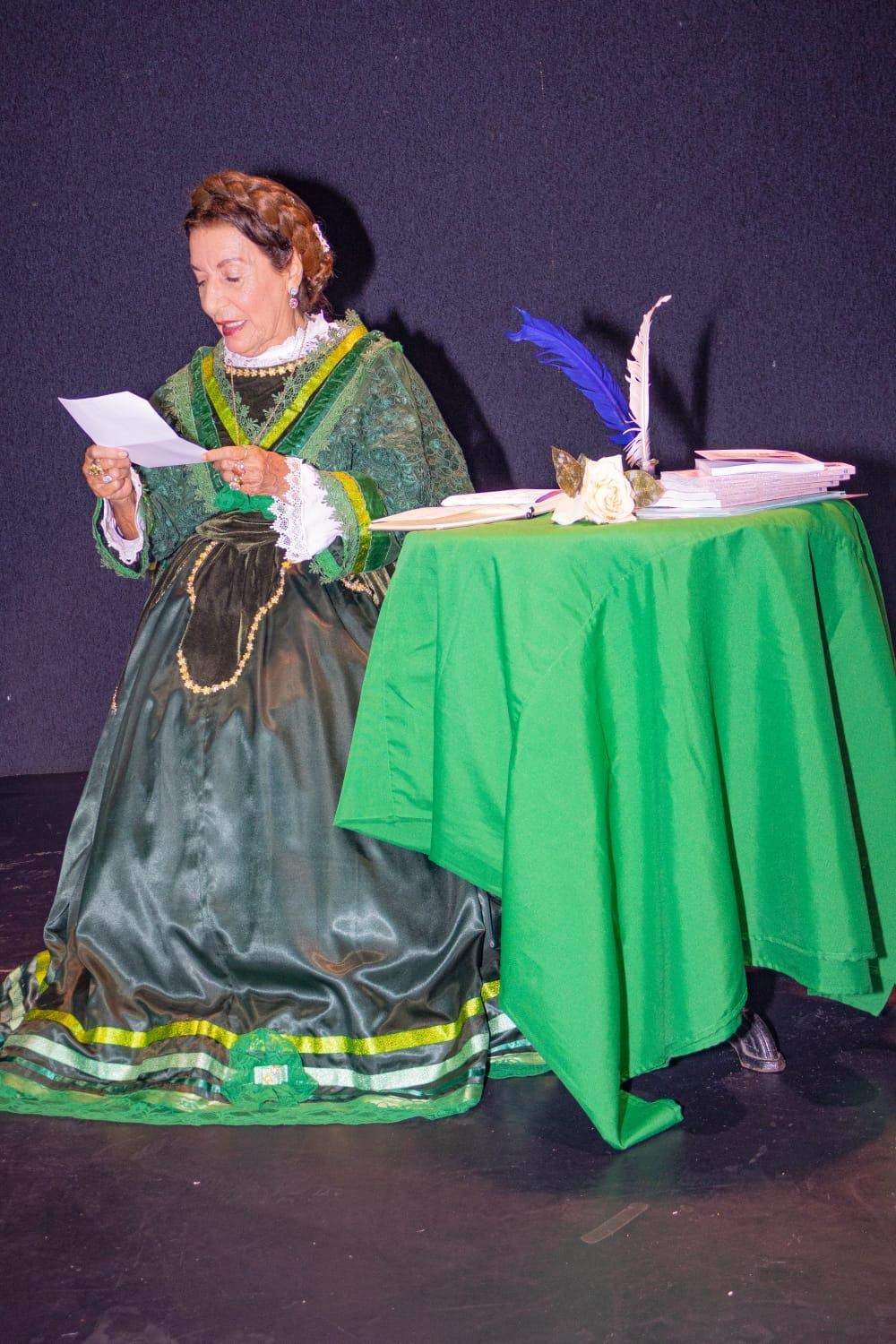 A atriz Edinar Corradini, intérprete consagrada da Imperatriz Teresa Cristina, emociona o público ao realizar a leitura de cartas da Imperatriz ao seu esposo, Dom Pedro II.