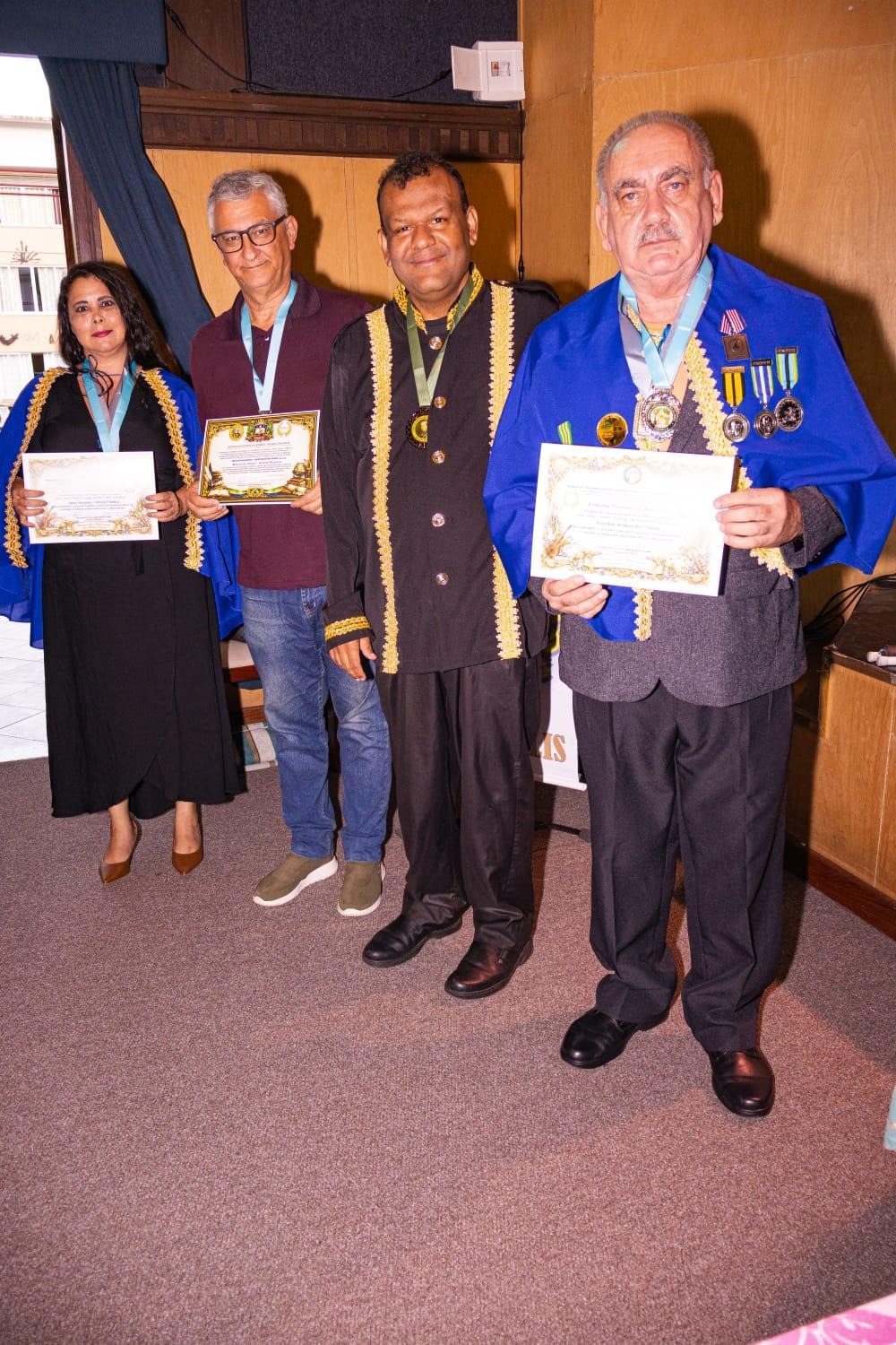 Outro momento de elevado prestígio e singular relevância na solenidade foi a concessão dos títulos de Doutor Honoris Causa, realizada em parceria com o Centro Sarmathiano de Altos Estudos Filosóficos e Históricos. Trata-se de uma das mais altas distinções acadêmicas conferidas pela Federação Brasileira dos Acadêmicos das Ciências, Letras e Artes, destinada a reconhecer personalidades de notório saber, cuja trajetória intelectual, científica e cultural se destaca pela excelência, pela produção de conhecimento e pelo impacto significativo na sociedade.