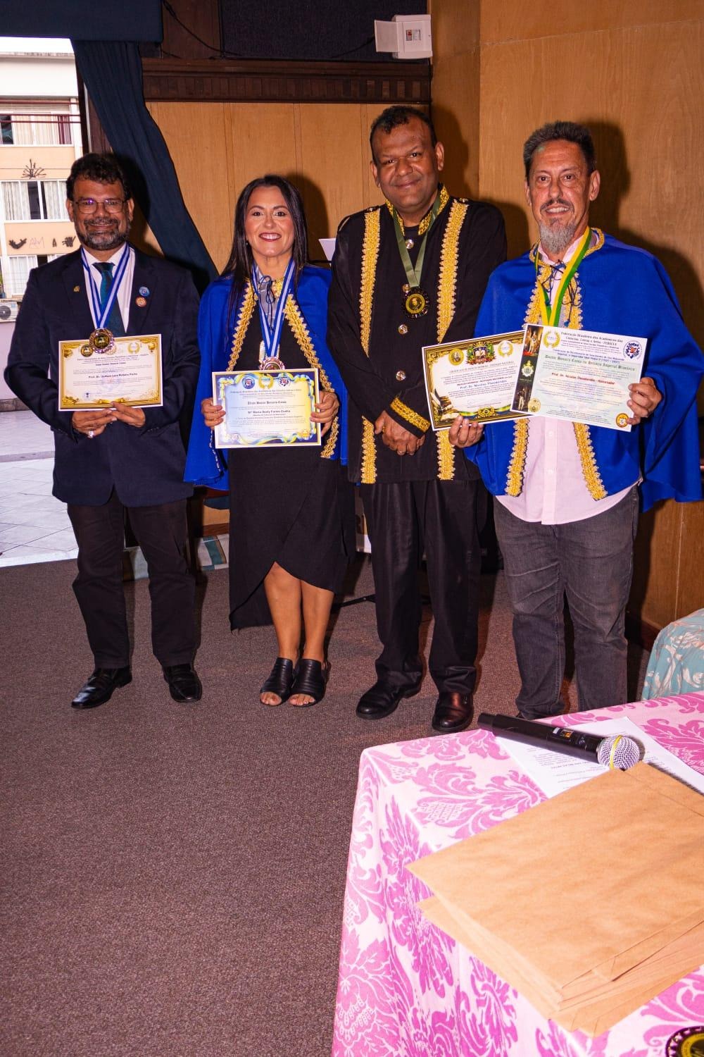 Momento solene da outorga dos títulos de Doutor Honoris Causa, uma das mais elevadas distinções concedidas pela Federação Brasileira dos Acadêmicos das Ciências, Letras e Artes, em parceria com o Centro Sarmathiano de Altos Estudos Filosóficos e Históricos.