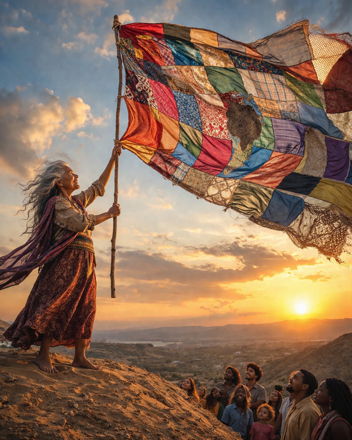 La incógnita observaba feliz las banderas, cogió una a una y las unió haciendo con ellas una única y larga bandera. La bandera de un mundo sin límites ni fronteras, donde no existe el hambre y no hay diferencias.