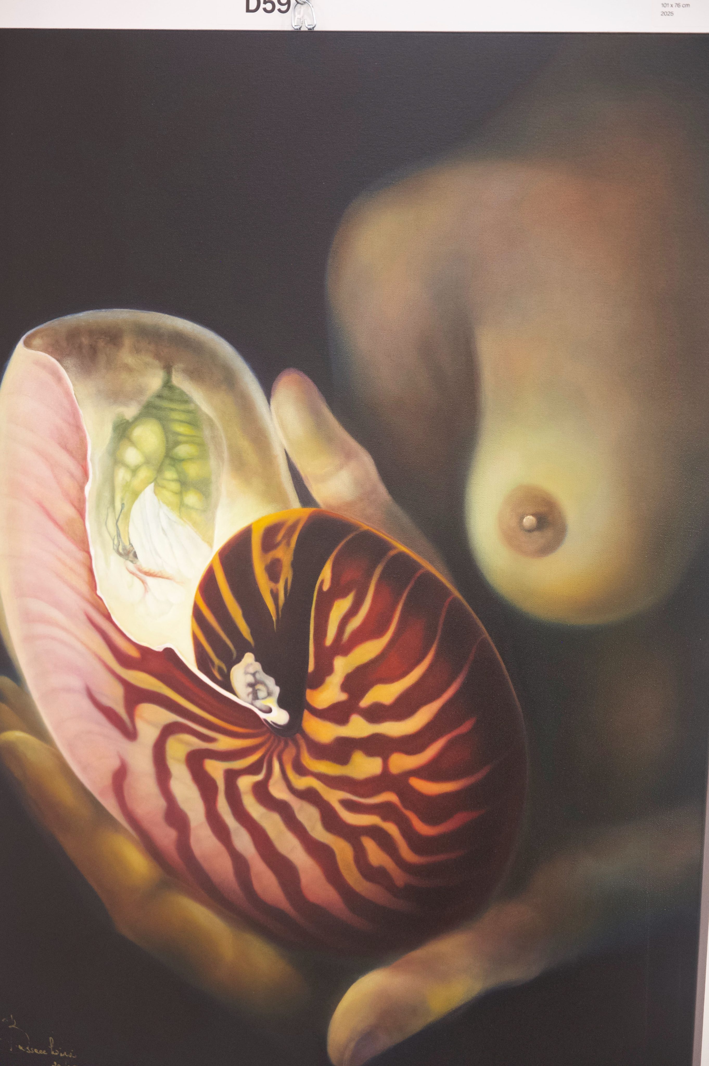 Le sue opere, sospese tra realismo e sogno, tra materia e simbolo, parlano con voce quieta ma potente. La conchiglia, la donna, l’acqua, la luce: ogni elemento si ripete come una preghiera laica. Guardarle è come sporgersi su una soglia – quella tra il corpo e lo spirito, tra ciò che si mostra e ciò che rimane invisibile.