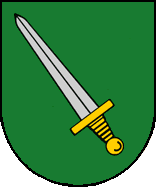 Armas: En campo de sinople, una espada de plata encabada de oro puesta en banda.