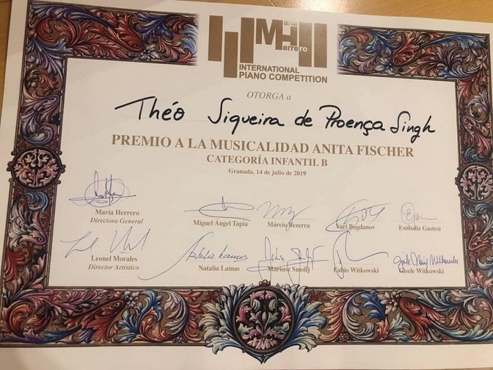 Théo Siqueira de Proença Singh, de 11 anos, se destaca no 9º Concurso Internacional de Piano Maria Herrero, em Granada, Espanha