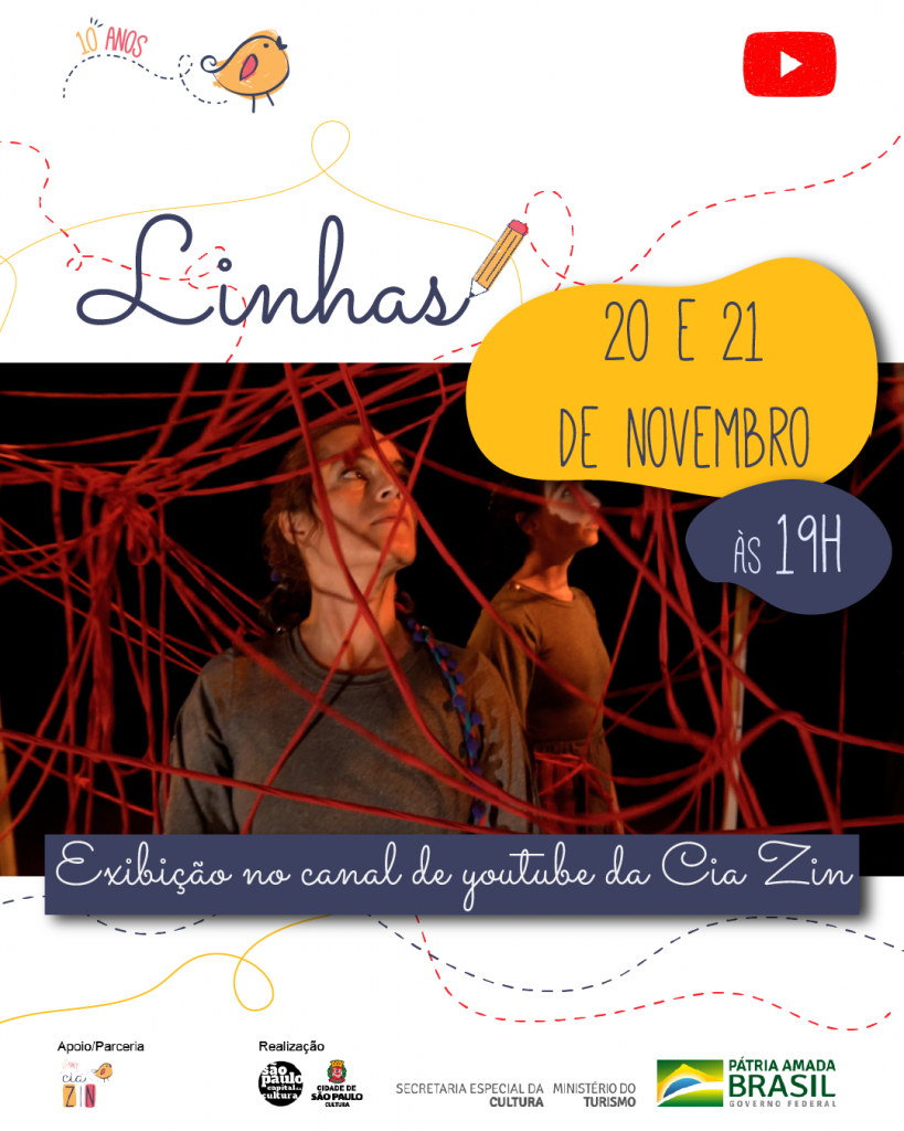 Exibição: dias 20 e 21 de novembro 11 às 19h pelo canal do Youtube da Cia Zin