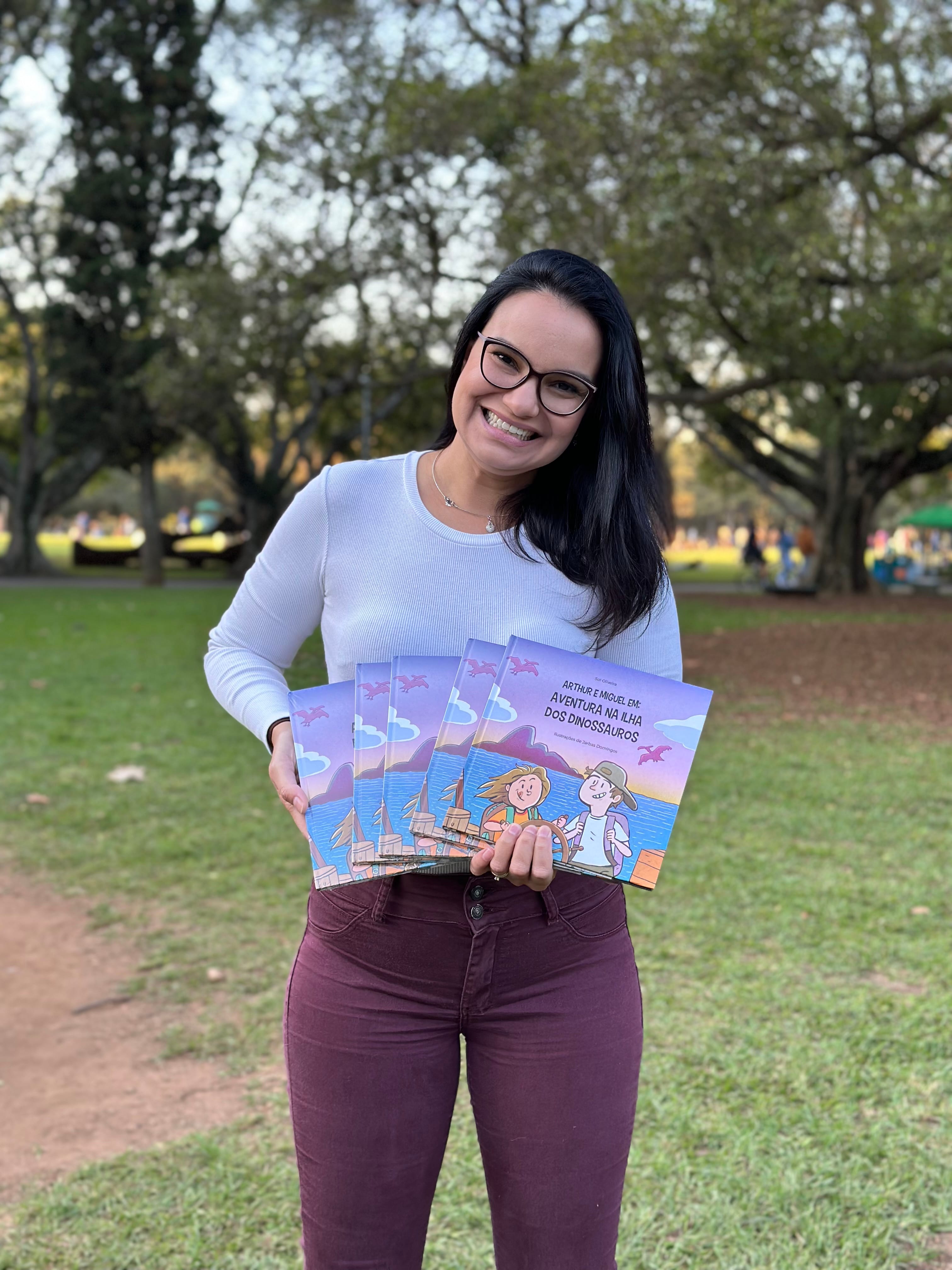 Já esta obra, o segundo, também iniciou com o apoio do seu filho, que queria que a aventura ocorresse em uma ilha. Mas além do seu filho, o seu marido também sugeriu que fossem acrescentados novos personagens, como os piratas. Como o seu filho amou a sugestão do pai, a escritora seguiu nesta linha e criou essa maravilhosa obra infantil, ‘Arthur e Miguel em: Aventura na ilha dos dinossauros’.